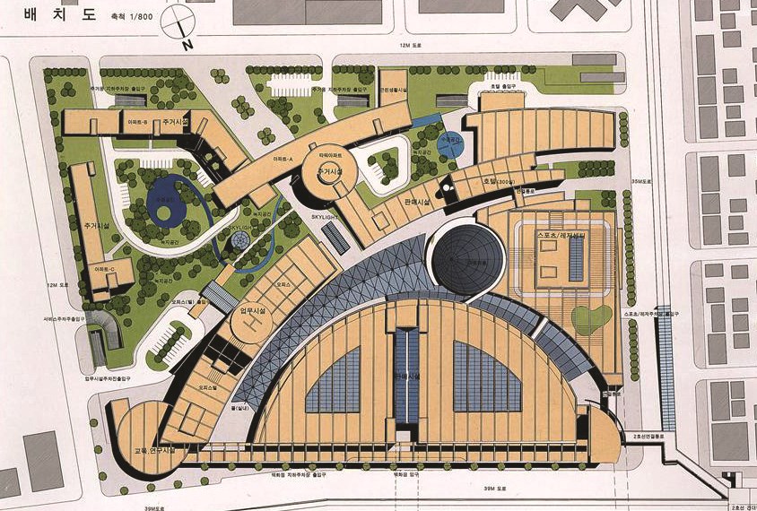 This development integrates fluidly into its bustling and vital urban neighborhood. It adds a shopping mall, apartments, office space, a hotel, a theater, and a unique "officetel" to downtown Seoul. It is situated immediately next to Konkuk University at the juncture of two subway lines, near major bus lines, and connects directly to the University campus. It links neighborhood schools, housing, restaurants and other retail space. The entrance blends seamlessly with the surrounding pedestrian area and beckons visitors to the site.