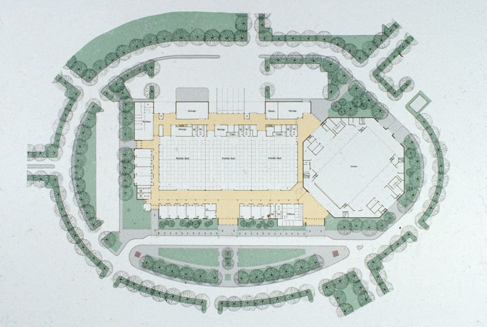 The Convention Center in Sioux Falls, South Dakota has become both a business focal point and a landmark for the state, as well as headquarters for a statewide telecommunications network. The design allows for great versatility with 50,000 sf of column-free exhibition space, 18,000 sf of banquet space, and 15,000 sf of flexible office and support space. It was also designed with future expansion in mind. In addition, the convention center itself is linked to an existing sports arena, which expands both the overall functionality and available floor space.