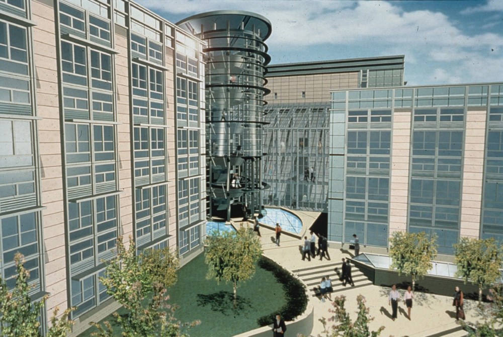 The R & D function is critical for the Korea Electric Power Company (KEPCO), which provides laboratory services to clients worldwide. This 9-story facility, with ample laboratory, office, and library space, not only meets those functional needs effectively, but is aesthetically rewarding as well. Its appearance is dramatic and yet fits comfortably into its natural surroundings.